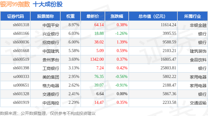 银河99(000959)指数十大成份股详情如下: