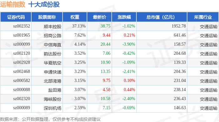 运输指数(399237)十大成份股详情如下: