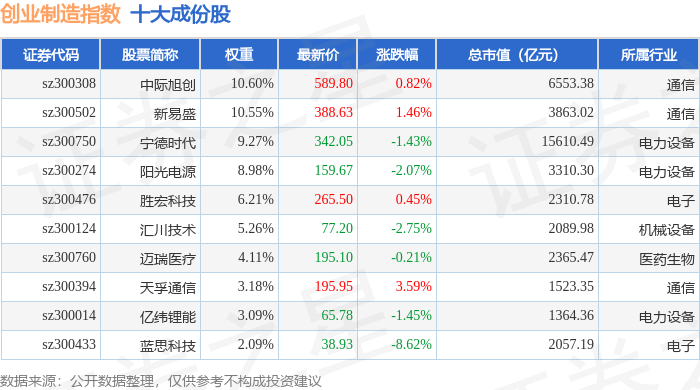 证券之星消息,1月26日,创业制造(399261)指数报收于6546.52点,跌1.2%,成交1912.09亿元,换手率4.8%。当日该指数成份股中,上涨的有13家,智飞生物以14.87%的涨幅领涨,下跌的有37家,珂玛科技以10.97%的跌幅领跌。