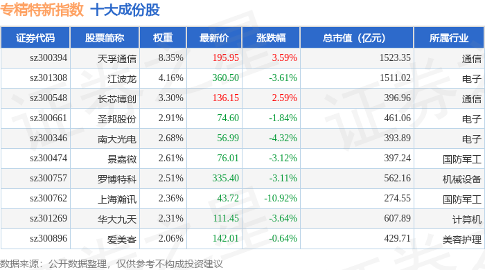 专精特新(399267)指数十大成份股详情如下: