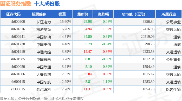 国证服务(399320)指数十大成份股详情如下: