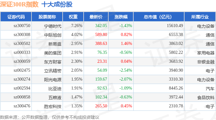 深证300R(399344)指数十大成份股详情如下: