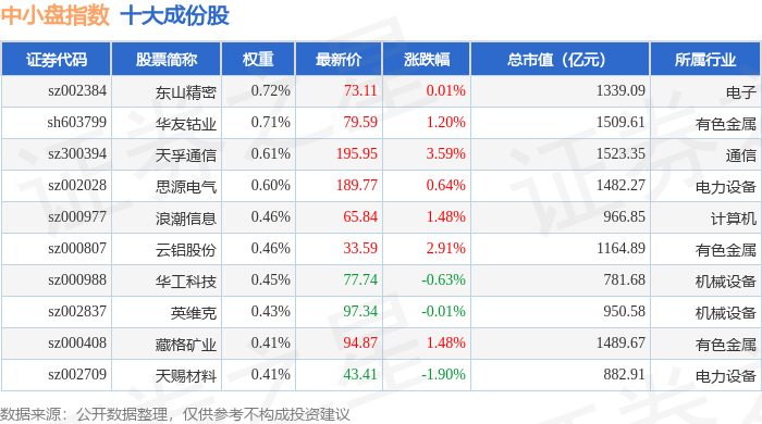 中小盘(399401)指数十大成份股详情如下: