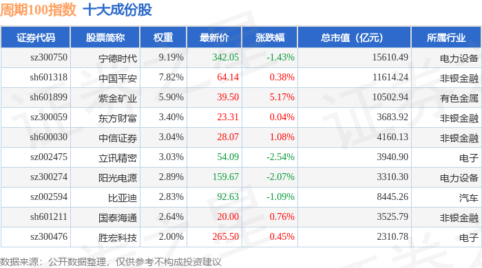 证券之星消息,1月26日,周期100(399402)指数报收于3916.83点,涨0.6%,成交3013.32亿元,换手率1.4%。当日该指数成份股中,上涨的有52家,中金黄金以10.0%的涨幅领涨,下跌的有48家,拓普集团以7.39%的跌幅领跌。