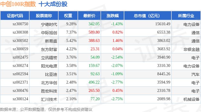 中创100R(399611)指数十大成份股详情如下: