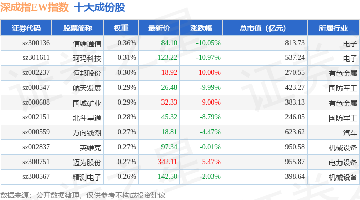 深成指EW(399659)指数十大成份股详情如下: