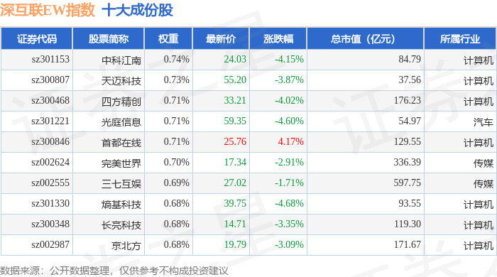 资金流向方面,深互联EW(399677)指数成份股当日主力资金净流出合计29.81亿元,游资资金净流入合计7.74亿元,散户资金净流入合计22.07亿元。成份股资金流向详情见下表: