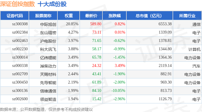 证券之星消息,1月26日,深证创投(399696)指数报收于4809.3点,跌0.38%,成交2155.74亿元,换手率6.29%。当日该指数成份股中,上涨的有52家,网宿科技以20.03%的涨幅领涨,下跌的有119家,昊志机电以13.89%的跌幅领跌。