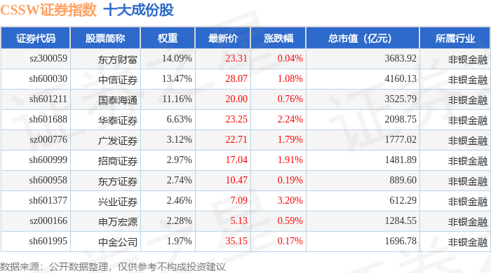 证券之星消息,1月26日,CSSW证券(399707)指数报收于6527.87点,涨0.73%,成交570.95亿元,换手率1.71%。当日该指数成份股中,上涨的有32家,财通证券以4.3%的涨幅领涨,下跌的有13家,华林证券以1.46%的跌幅领跌。