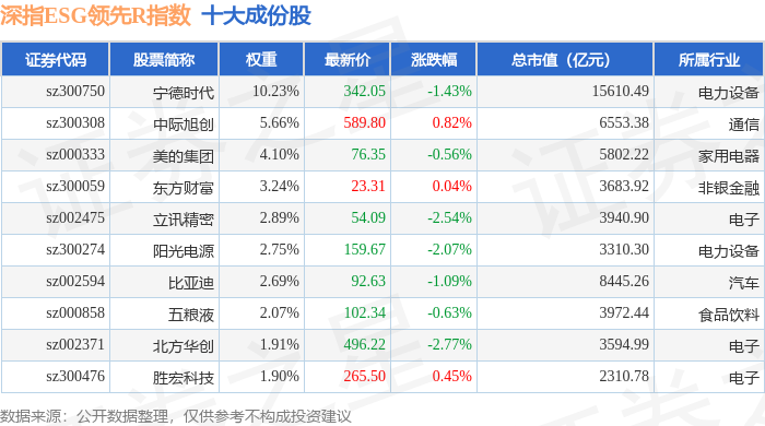 深指ESG领先R(470029)指数十大成份股详情如下: