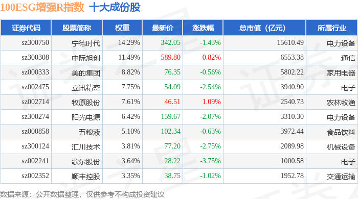 证券之星消息,1月26日,100ESG增强R(470033)指数报收于1714.14点,跌0.76%,成交1387.73亿元,换手率1.83%。当日该指数成份股中,上涨的有19家,宁波银行以4.52%的涨幅领涨,下跌的有21家,德赛西威以4.02%的跌幅领跌。