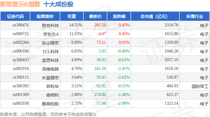 新型显示R(470048)指数十大成份股详情如下: