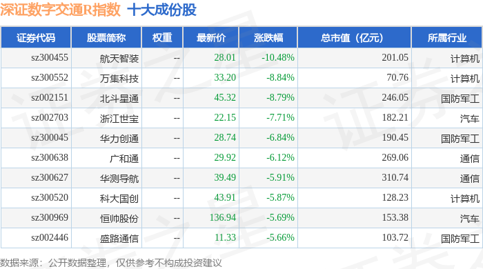 深证数字交通R(470049)指数十大成份股详情如下: