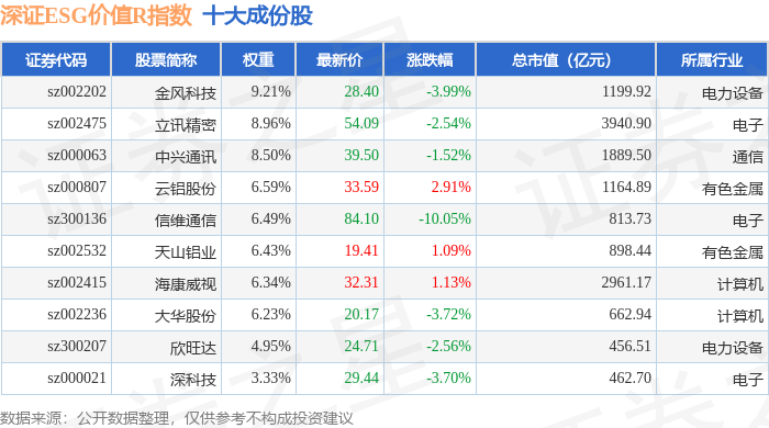 深证ESG价值R(470061)指数十大成份股详情如下:
