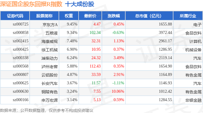 深证国企股东回报R(470064)指数十大成份股详情如下: