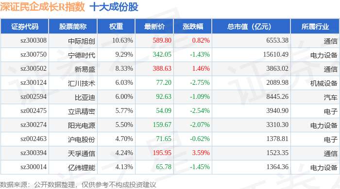 深证民企成长R(470071)指数十大成份股详情如下: