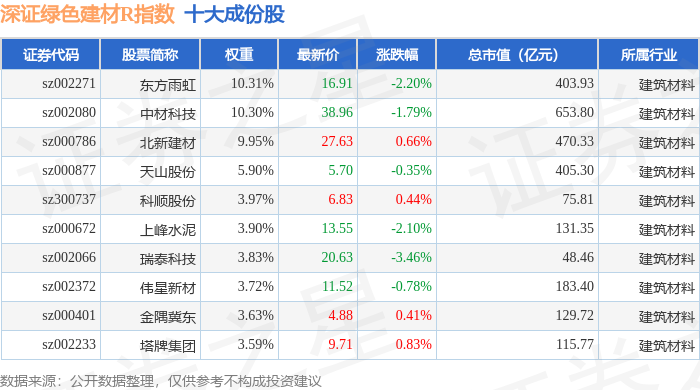 深证绿色建材R(470077)指数十大成份股详情如下: