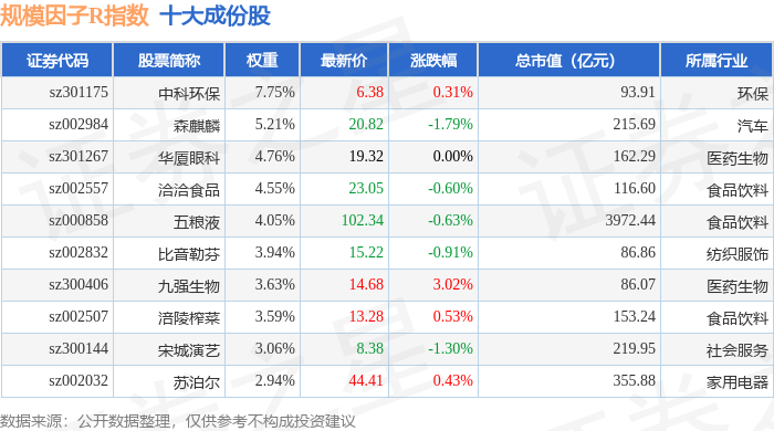 规模因子R(480055)指数十大成份股详情如下: