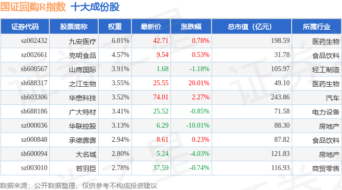 国证回购R(480063)指数十大成份股详情如下: