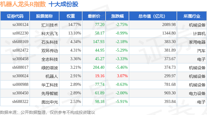 机器人龙头R(480071)指数十大成份股详情如下: