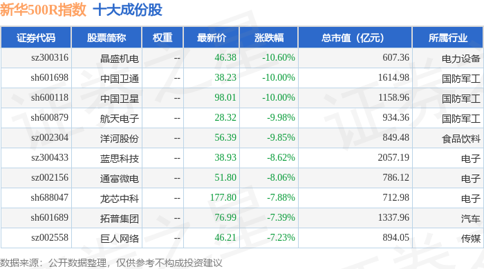 资金流向方面,新华500R(489001)指数成份股当日主力资金净流出合计383.62亿元,游资资金净流入合计108.06亿元,散户资金净流入合计275.55亿元。成份股资金流向详情见下表:
