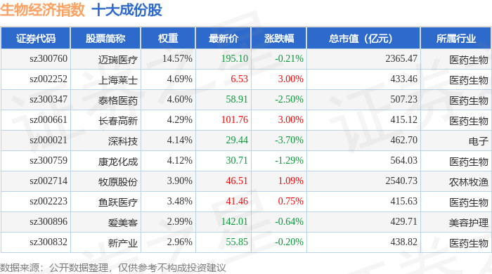 生物经济(970038)指数十大成份股详情如下: