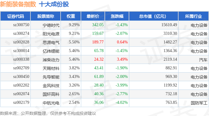新能装备(970043)指数十大成份股详情如下: