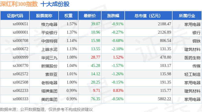 深红利300(970062)指数十大成份股详情如下: