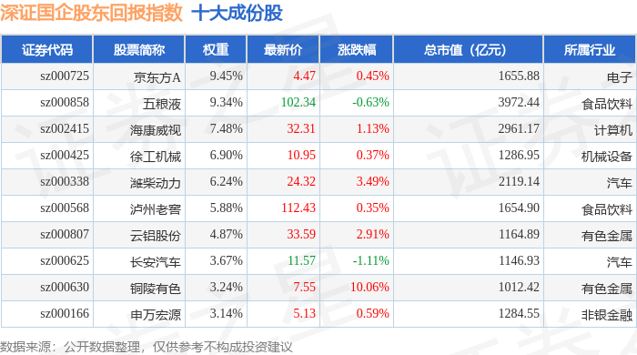 深证国企股东回报(970064)指数十大成份股详情如下: