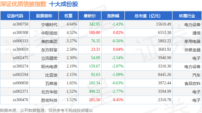 深证优质信披(970065)指数十大成份股详情如下: