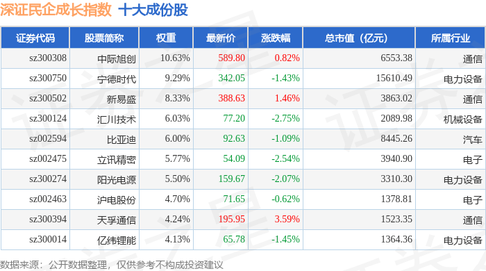 深证民企成长(970071)指数十大成份股详情如下: