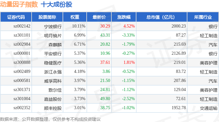 动量因子(980057)指数十大成份股详情如下: