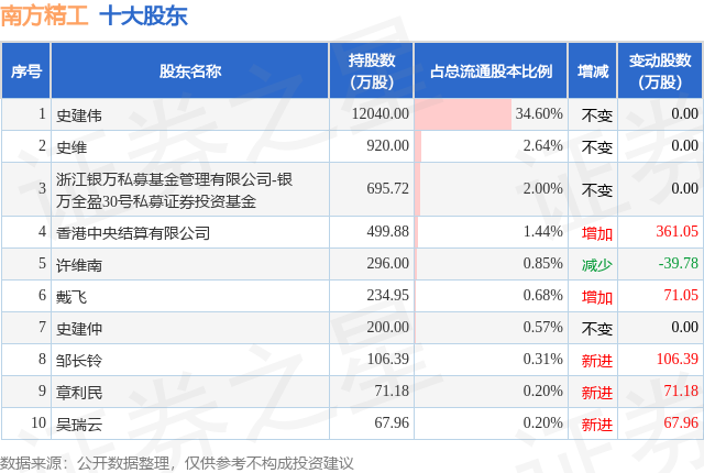 根据南方精工2025年三季报公布的十大股东详情如下:
