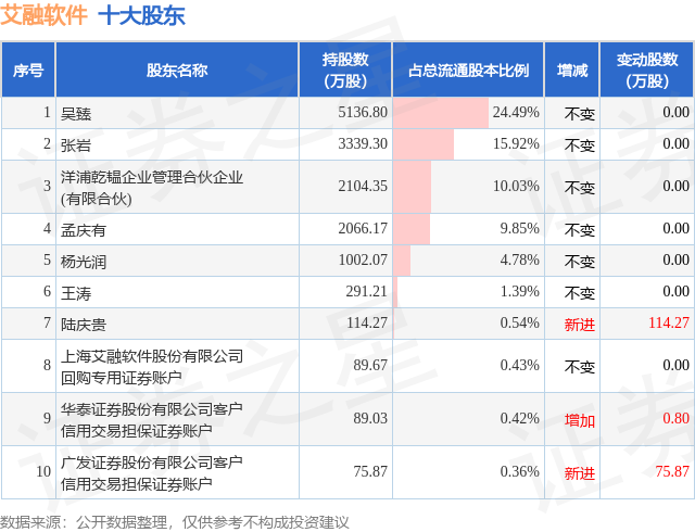 根据艾融软件2025年三季报公布的十大股东详情如下: