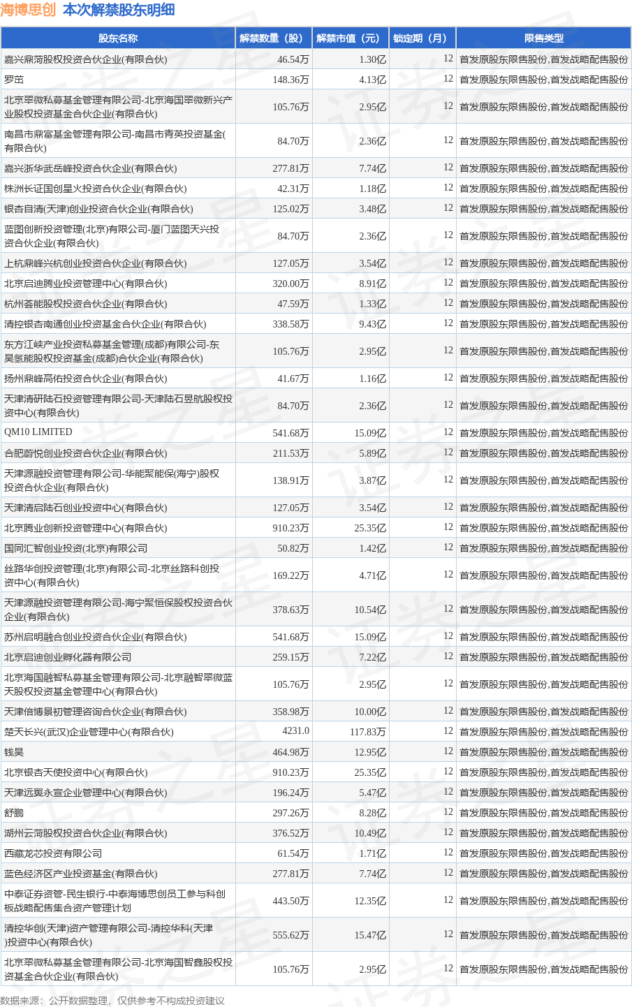 本次解禁涉及股东明细见下表: