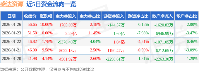 证券之星1月27日盘中消息,10点38分盛达资源(000603)触及涨停板。其所属行业工业金属目前下跌。领涨股为豫光金铅。该股为黄金,白银,有色 · 锌概念热股,当日黄金概念上涨5.43%,白银概念上涨2.34%,有色 · 锌概念上涨0.16%。