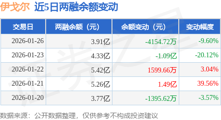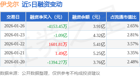 证券之星消息,1月26日,伊戈尔(002922)融资买入1.14亿元,融资偿还1.55亿元,融资净卖出4153.45万元,融资余额3.91亿元。