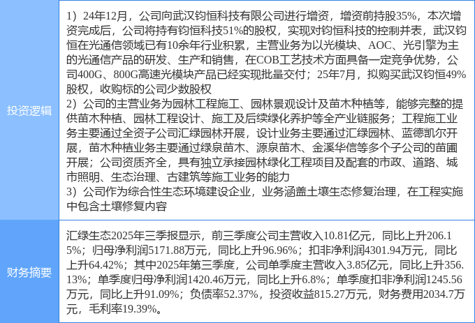 该股为光通信,园林,土壤修复概念热股,当日光通信概念上涨1.84%。