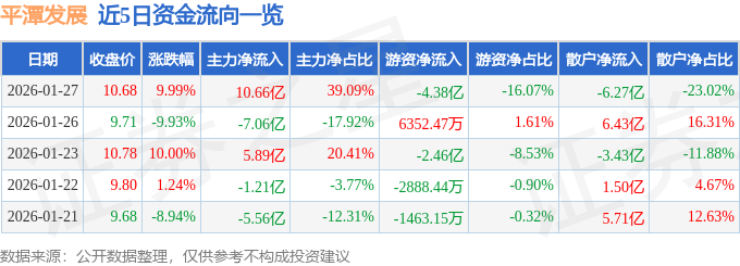 1月27日的资金流向数据方面,主力资金净流入10.66亿元,占总成交额39.09%,游资资金净流出4.38亿元,占总成交额16.07%,散户资金净流出6.27亿元,占总成交额23.02%。