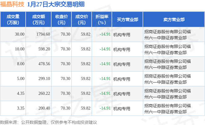 证券之星消息,1月27日福晶科技发生大宗交易,交易数据如下: