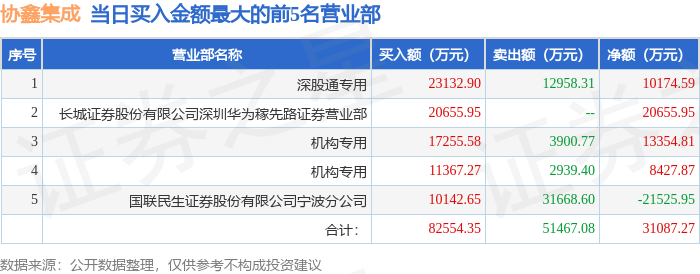 证券小知识:龙虎榜是交易所披露的竞价交易公开信息,现身龙虎榜的个股都是当日最为活跃的个股,是投资者日常重点关注的数据。交易所公布当日买入金额和卖出金额前五名的席位,其中一些席位代表特殊意义,如机构专用席位是指基金专用席位、券商自营专用席位、社保专用席位、券商理财专用席位、保险机构专用席位、保险机构租用席位、QFII专用席位等机构投资者买卖证券的专用通道和席位。深股通专用、沪股通专用为北向资金的交易席位。