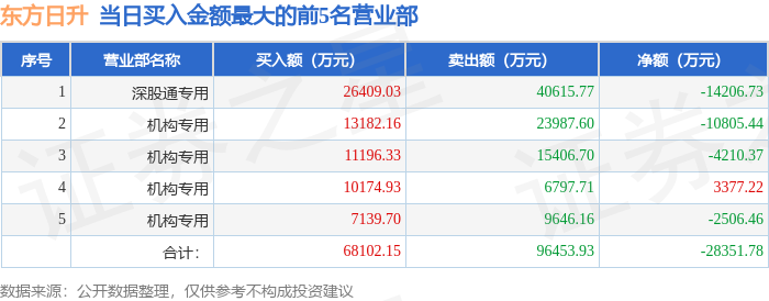 证券之星消息,沪深交易所2026年1月27日公布的交易公开信息显示,东方日升(300118)因日换手率达到30%的前5只证券登上龙虎榜。此次是近5个交易日内第3次上榜。