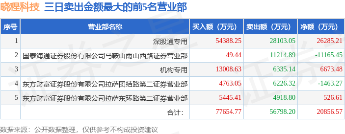 证券之星消息,沪深交易所2026年1月27日公布的交易公开信息显示,晓程科技(300139)因日换手率达到30%的前5只证券,连续三个交易日内,涨幅偏离值累计达到30%的证券登上龙虎榜。此次是近5个交易日内第2次上榜。