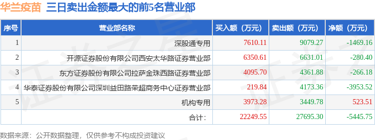 证券之星消息,沪深交易所2026年1月27日公布的交易公开信息显示,华兰疫苗(301207)因连续三个交易日内,涨幅偏离值累计达到30%的证券登上龙虎榜。此次是近5个交易日内第2次上榜。