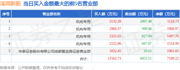 从龙虎榜公布的当日买卖数据来看,机构合计净买入6107.39万元。