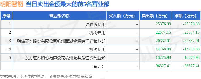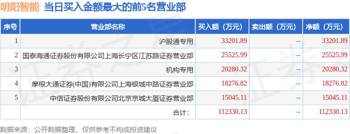 证券之星消息,沪深交易所2026年1月27日公布的交易公开信息显示,明阳智能(601615)因有价格涨跌幅限制的日价格振幅达到15%的前五只证券登上龙虎榜。此次是近5个交易日内第2次上榜。