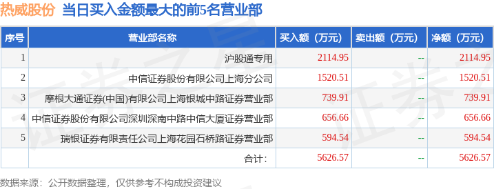 证券小知识:龙虎榜是交易所披露的竞价交易公开信息,现身龙虎榜的个股都是当日最为活跃的个股,是投资者日常重点关注的数据。交易所公布当日买入金额和卖出金额前五名的席位,其中一些席位代表特殊意义,如机构专用席位是指基金专用席位、券商自营专用席位、社保专用席位、券商理财专用席位、保险机构专用席位、保险机构租用席位、QFII专用席位等机构投资者买卖证券的专用通道和席位。深股通专用、沪股通专用为北向资金的交易席位。