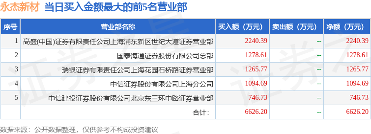证券之星消息,沪深交易所2026年1月27日公布的交易公开信息显示,永杰新材(603271)因有价格涨跌幅限制的日换手率达到20%的前五只证券登上龙虎榜。此次是近5个交易日内第1次上榜。