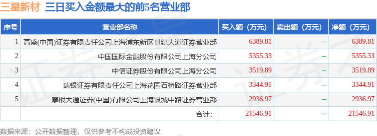 证券之星消息,沪深交易所2026年1月27日公布的交易公开信息显示,三星新材(603578)因非ST、*ST和S证券连续三个交易日内收盘价格涨幅偏离值累计达到20%的证券登上龙虎榜。此次是近5个交易日内第1次上榜。