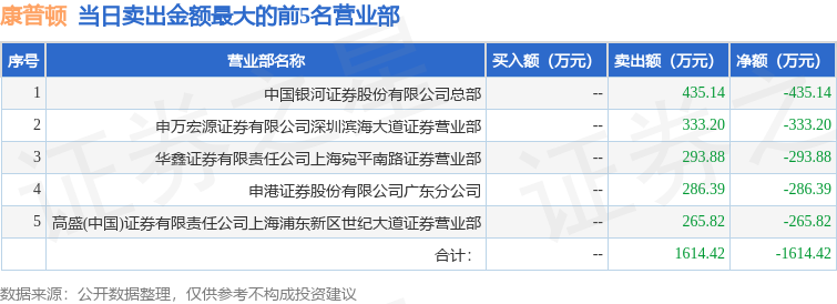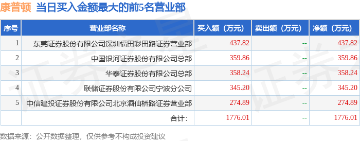证券之星消息,沪深交易所2026年1月27日公布的交易公开信息显示,康普顿(603798)因有价格涨跌幅限制的日收盘价格跌幅偏离值达到7%的前五只证券登上龙虎榜。此次是近5个交易日内第1次上榜。